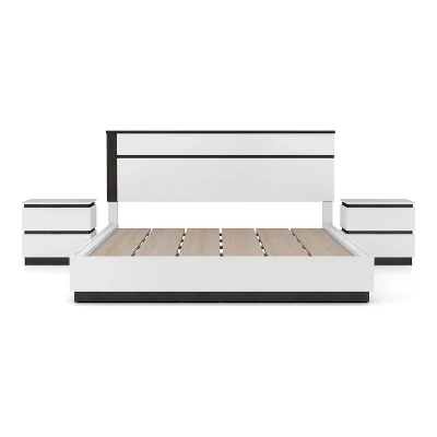 - Includes: One (1) Queen Bed and Two (2) Nightstands