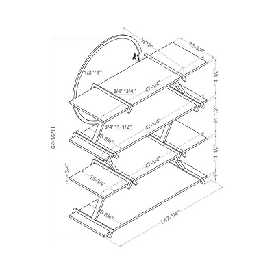 Entertain the eye with this unique industrial bookshelf. The matte black powder coated steel frame is an interlocking inspired design that holds four light walnut finished MDF shelves. An offset ringback adds to the novel style. Abstract style meets urban style on this industrial inspired bookcase to any living space area.