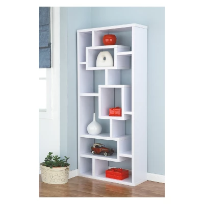The miBasics Heather 11 Shelf Bookcase in White has your display needs covered. Step up the modern pace of a bedroom or main living space with a chic unit. An ideal venue for showcasing books, photographs, potted greenery, or art objects, it delivers a modern yet timeless mosaic silhouette. This versatile shelf can be configured horizontally or vertically. The miBasics Heather 11 Shelf Bookcase in White looks great as a room divider or against a wall with its modern open shelving design.