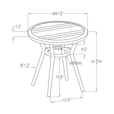 Use this outdoor side table to hold your coffee or tea while you read a book on your deck. The splayed legs and natural tone finish come together in a stylish mid-century modern and French-inspired design. Its aluminum frame is fade, mildew, scratch, and water-resistant for long-lasting use.