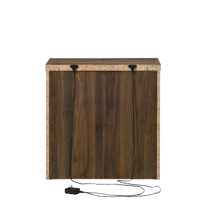 Embrace simplicity with the roomy storage and clean silhouette of this two-drawer nightstand. Perfect for bedside storage, it features a warm walnut wood finish complete with engaging wood grain details that bring rustic charm to your space. Two drawers are finished with black metal bar pulls, adding a hint of contrast. Add a rustic reading lamp or a beautiful candleholder to complete the look.