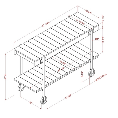 | Features | Fixed Shelf, Storage, Wheels |