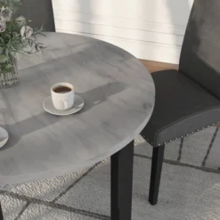 5pc Kellum Contemporary Round Dining Set White/Brushed Brown Gray/Light Gray – MiBasics