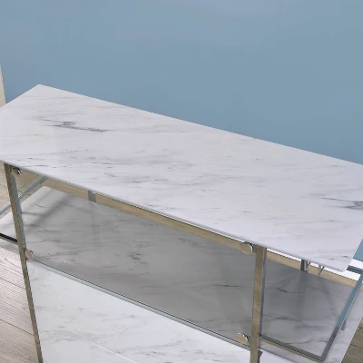 Fashioned to be stylish and exquisite, this contemporary faux marble adds elegance and sophistication to any home bar or entertainment area. It features a natural-looking faux marble top and base, an attractive fit for any occasion. But it was also built with convenience in mind, as it includes a hanging stemware rack and a handy footrest amidst its steel construction.