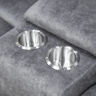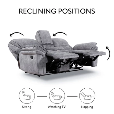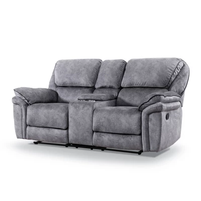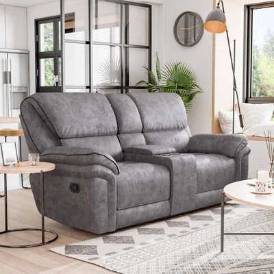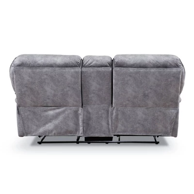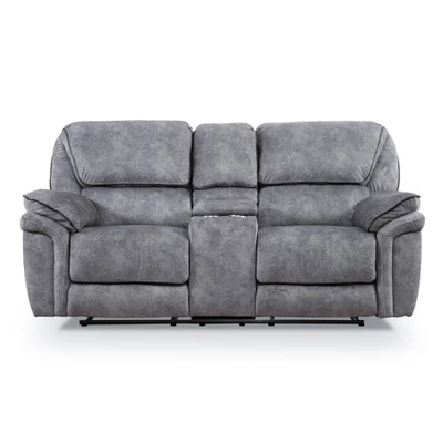 Introducing our luxurious Living Room Loveseat, a perfect blend of comfort, style, and functionality. Designed to comfortably seat two people, this loveseat offers a cozy and intimate seating experience. With manual reclining functionality, you can easily adjust the position to your preferred level of comfort. Simply lean back and unwind, enjoying a moment of relaxation. Wrapped in exquisite Palomino fabric, this loveseat exudes both elegance and durability. The plush padding ensures a luxurious seating experience, while the gray finish adds a touch of sophistication to your living room. The pillow top rolled arms provide additional support and a cozy feel, enhancing your comfort as you lounge. The foam and polyester seat material offers a combination of softness and resilience for long-lasting durability. Enhancing its functionality, this loveseat features a convenient center console with storage. Keep your remote controls, magazines, and other essentials within easy reach. The two cup holders allow you to enjoy your favorite beverages while lounging. With its transitional-inspired modern style, this loveseat effortlessly complements a variety of decor themes. Create a cohesive look by pairing it with our matching sofa and reclining chair, elevating the overall style of your living room. Upgrade your living space with our luxurious Living Room Loveseat, where comfort and style meet. Don’t miss out on this essential addition to your home furniture collection.
