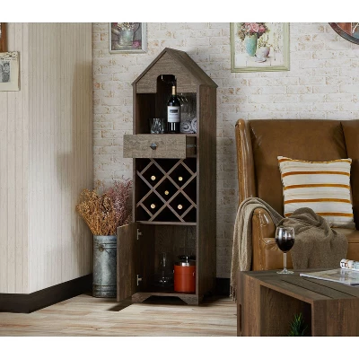 Give your wine and spirits a home of their own with this fun and unique wine cabinet. The design is compact but can hold a lot with the open shelving, cabinet and drawer. Conveniently keep stemware near and pour your favorite wine at the time you’re ready to unwind. Ideal for small spaces, the unit can be placed freestanding or against the wall. This piece adds a cozy touch that will elegantly organize your wine collection.