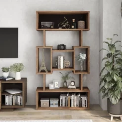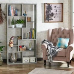 70.98″ Crusiton Versatile Bookcase Vintage Gray Oak – MiBasics